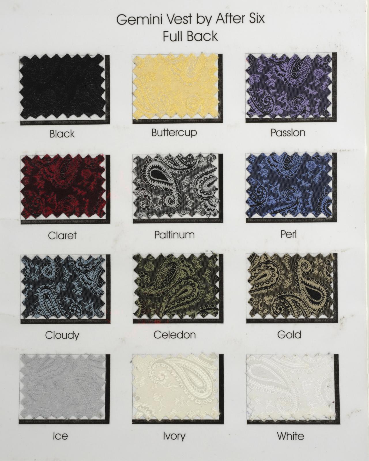Here you will find all the Vest Styles and colors available.